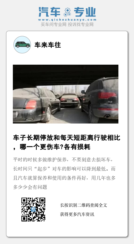 所以我们不难看出,车子长时间停放会更加伤车,尤其是在停放后就不管的情况下。