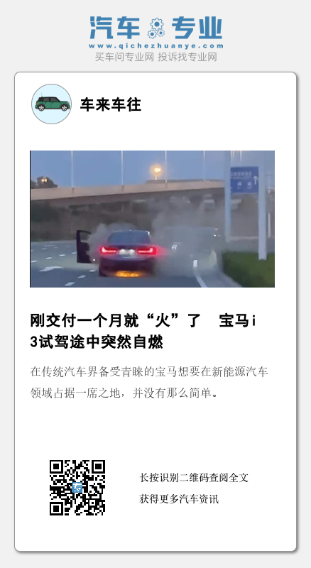 虽然交付时间不长,但这并不是宝马i3第一次出现负面报道了。不久前,就有一西安车主质疑宝马i3的电池质量有问题。
