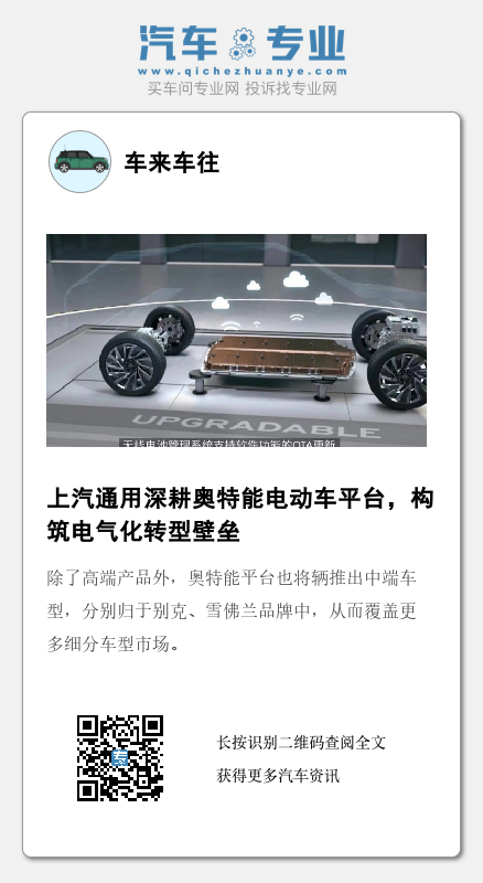 除了高端产品外,奥特能平台也将辆推出中端车型,分别归于别克、雪佛兰品牌中,从而覆盖更多细分车型市场。