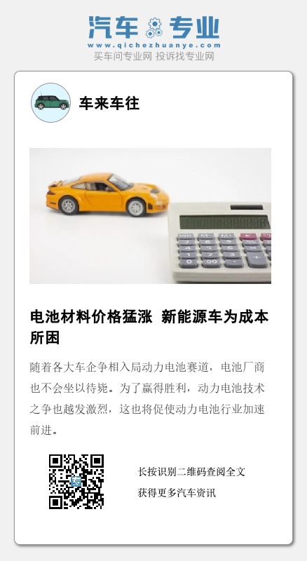 正如广汽集团曾庆洪说的那样,动力电池原材料一路暴涨,比如今年碳酸锂价格一度飙升至51.5万元/吨,一年多的时间涨幅超10倍,价格压力直接传导至整车厂,新能源汽车出现涨价潮。