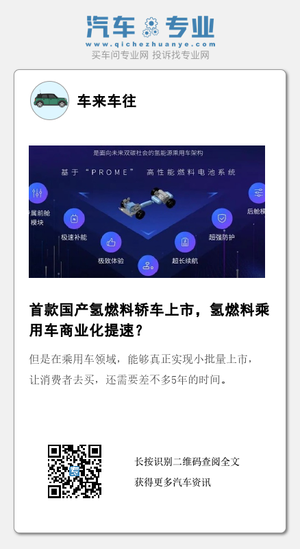 需要指出的是,面对制氢技术、储氢技术、运氢技术效率相对偏低、成本偏高、运输不方便、安全性待提高等问题,我国在推广氢燃料电池汽车的过程中,总体呈现出“重商轻乘”的特点。而此次深蓝SL03氢电版的上市,以及国内外车企的相继布局,可以说让发展相对缓慢的燃料电池乘用车迎来新的发展契机。