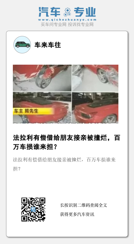 湖南长沙的熊先生花了将近200万元购买了一辆二手法拉利,刚买没几天借给朋友接亲,结果车子被撞烂!事后,用车人失联、保险公司拒赔、法院判定拒保,熊先生欲哭无泪......