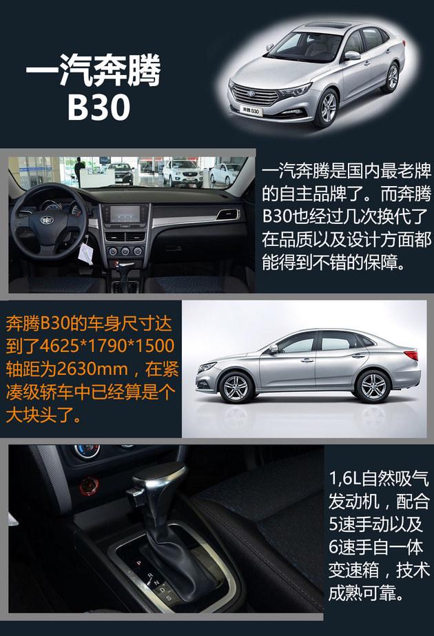 既然是推荐10万落地的车型,而且还需要空间以及自动挡,那么就只能推荐性价比最高的自主品牌车型了。本次推荐的四款车型,分别为,一汽奔腾B30、长安逸动三厢版、东风风神A60、吉利帝豪三厢版。