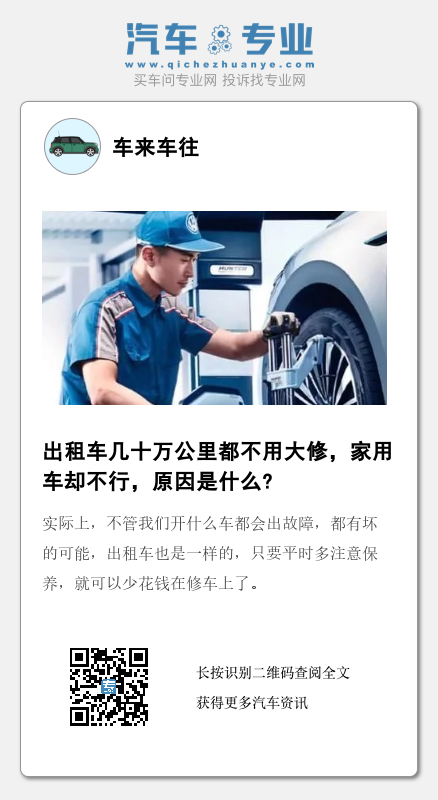 相信看了以上几点概括,大家应该能明白为什么出租车不常大修了。综合来说,私家车不能像出租车那样好久才修,不仅是因为做不到,还是因为车主对待车的态度而不愿意。