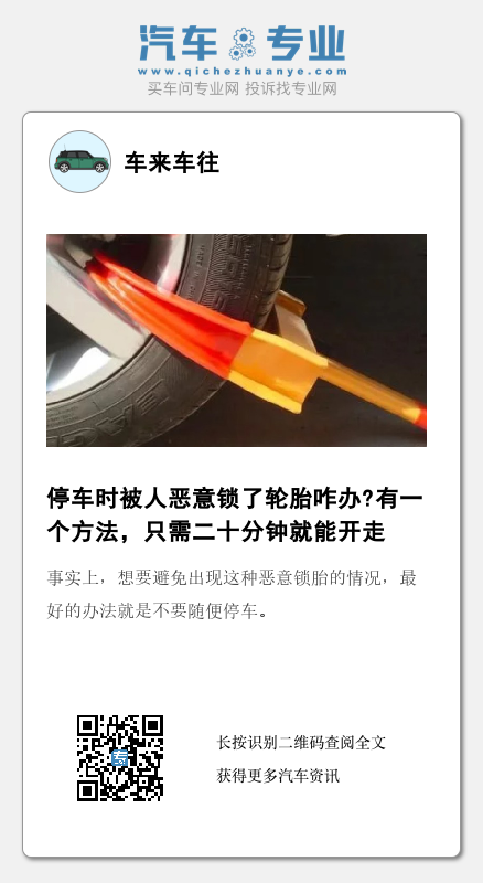 但是有些时候,明明是将车停在了不会妨碍他人的地方,却还是被人恶意锁了轮胎,这可如何是好?小编教你一个方法,只需要二十分钟就能开走车。