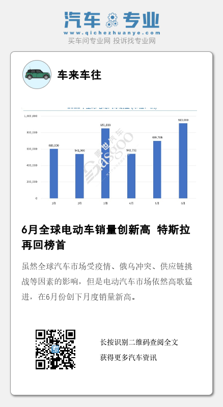 虽然全球汽车市场受疫情、俄乌冲突、供应链挑战等因素的影响,但是电动汽车市场依然高歌猛进,在6月份创下月度销量新高。