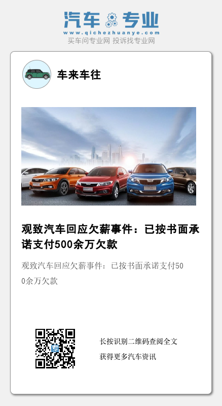 观致汽车出具了书面承诺,明确分四次支付完毕,目前正在按照计划正常支付。截至8月1日,观致汽车已按上述承诺按期支付共计520.1万元,剩余将按后续计划予以兑现。