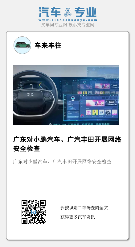 8月2日,广东省通信管理局宣布组织中国电子信息产业发展研究院、中国信息通信研究院两家单位的专家成立专项检查工作组,对广州小鹏汽车科技有限公司、广汽丰田汽车有限公司开展为期一周的“双随机、一公开”网络安全检查。