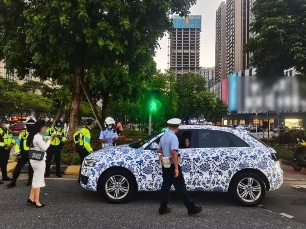 7月27日,民警在顺德德民路与观绿路交叉路口执勤时,一辆神似“青花瓷”的小车引起了民警的注意。民警随即上前将车辆拦停检查。