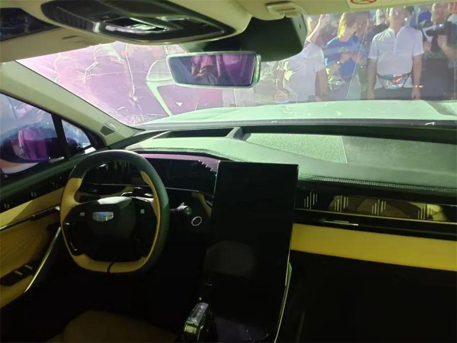 至于内饰部分,据官方之前释放的消息,博越L配有全系标配的13.2英寸竖置中控屏与10.25英寸的屏幕组合,辅以全新造型的三辐式多功能方向盘。虽然现场博越L的内饰并未向公众开放,但笔者有幸进入车内并拍摄了相关照片,从照片来看,博越L内饰极其简约,科技感满满。