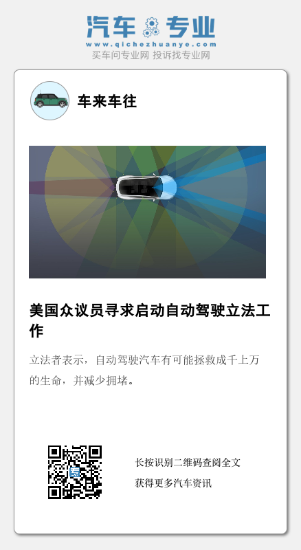 据外媒报道,美国众议院的两名议员正在发起一项两党合作的努力,旨在促进自动驾驶汽车的立法工作。