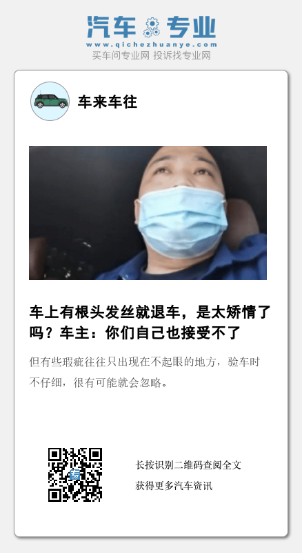 据这位负责人说,胡先生提到退车要求是肯定不符合相关规定的,但他们出于人道关怀,还是决定满足客户的要求。这件事情他被曝光之后有人说胡先生太矫情,因为一根头发丝就要退车,那以后谁都没法买车了。