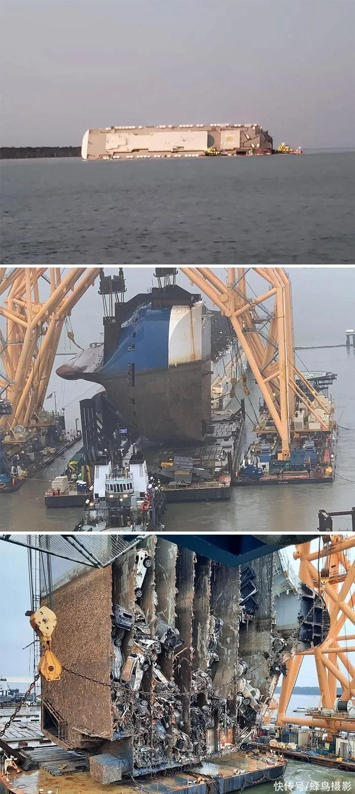 一艘装有4000多辆汽车货轮发生了车翻,14个月后它被拆除。