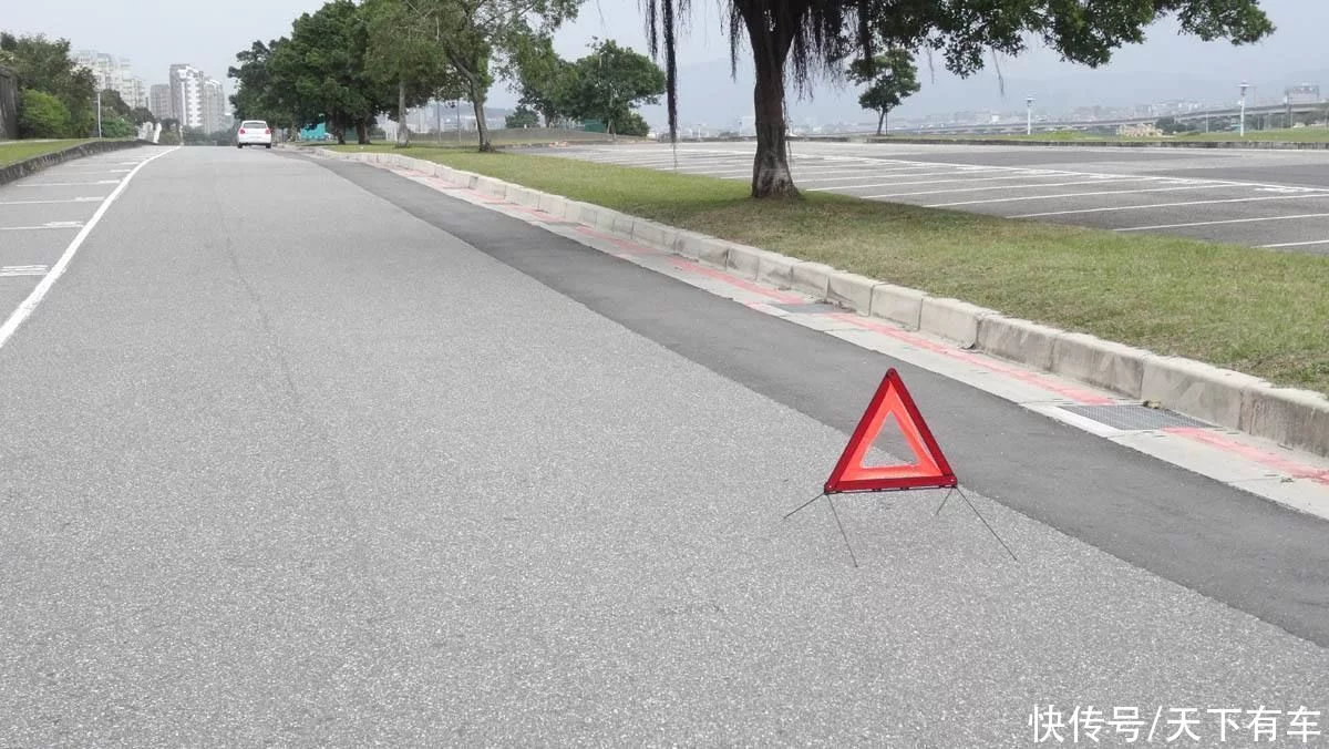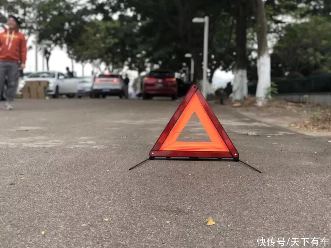 此外在车子后面放三角警示牌也是有讲究的,至少要放到距离自己车子150米远的地方。
