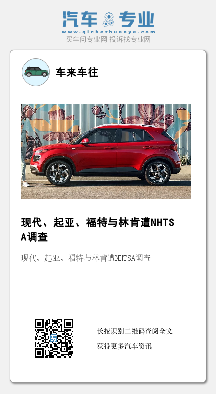 此外,NHTSA还对超过170万辆福特Fusion和林肯MKZ中型轿车展开了安全调查,此前有报道称这两款车辆的前制动软管会出现故障。