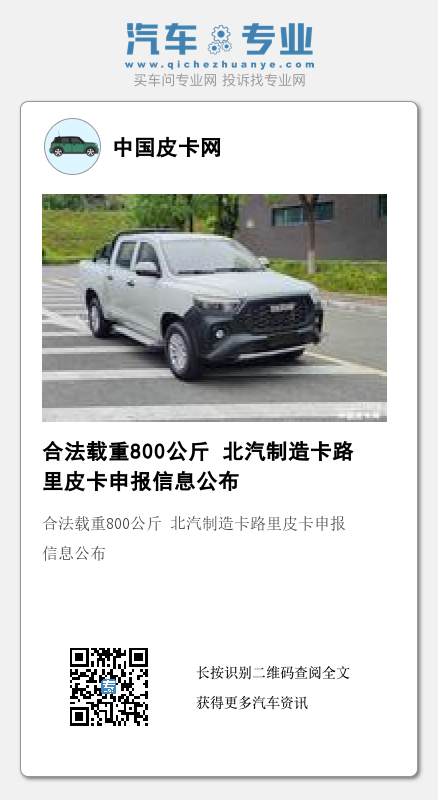 近日,工信部发布了第360批《道路机动车辆生产企业及产品公告》新产品公示。在此次申报中,北京汽车制造厂过审了一款全新车型,该车就是北汽此前曝光的卡路里(图片)皮卡,过审公示后,也就意味着该车将在不久的将来宣布上市。
