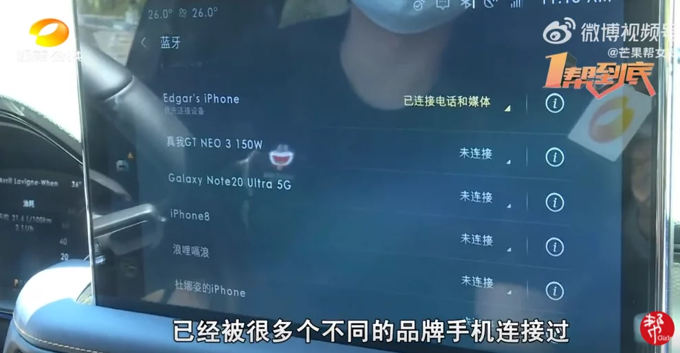 王先生表示,车买回来后,自己第一次相连蓝牙时,发现车上的蓝牙设备已经被很多不同品牌的手机连接过,足有十多个,当时自己的老婆坐在副驾,看到这一幕,还引起了误会。