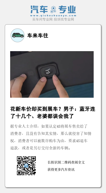 不过在接受采访时,该4S的工作人员又称不清楚卖给王先生的车到底是不是展车,被要求核实相关信息时,他们也表示王先生的车已经上牌,会有各种问题。
