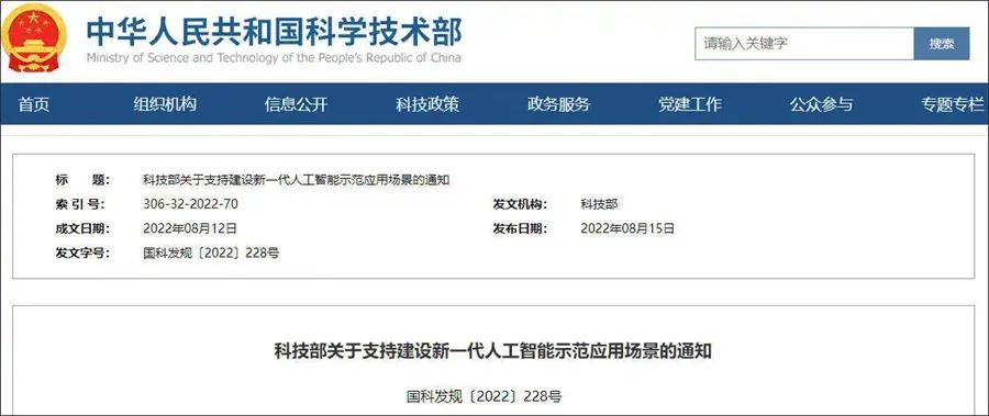 8月15日,科技部网发布《关于支持建设新一代人工智能示范应用场景的通知》,其中提出,针对自动驾驶从特定道路向常规道路进一步拓展需求,运用车端与路端传感器融合的高准确环境感知与超视距信息共享、车路云一体化的协同决策与控制等关键技术,开展交叉路口、环岛、匝道等复杂行车条件下自动驾驶场景示范应用,推动高速公路无人物流、高级别自动驾驶汽车、智能网联公交车、自主代客泊车等场景发展。