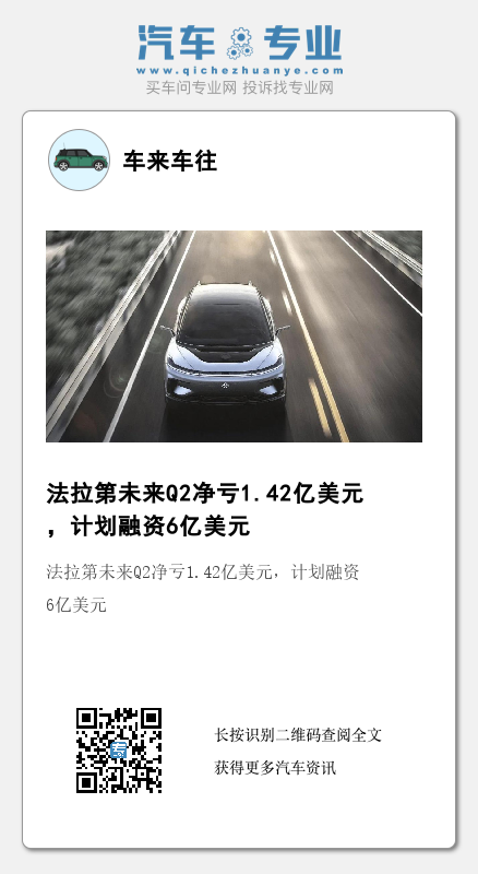当天,法拉第未来还公布了第二季度财报。其中营业亏损约1.37亿美元,同比增长近390%;净亏损约为1.42亿美元,几乎是去年同期的三倍。截至第二季度末,该公司还持有1.21亿美元现金;截至8月9日,其现金余额只有5,220万美元。截至二季度末,法拉第未来累计赤字约为32亿美元。