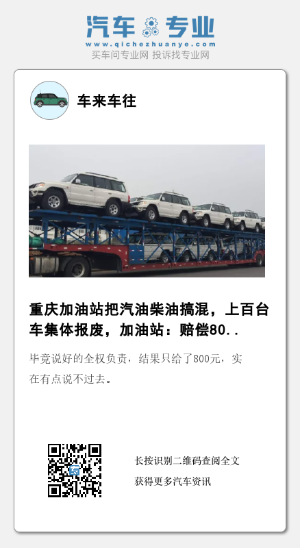事发后,加油站积极拟订出方案,由于车辆过多没办法一次性运输处理,所以希望车主们主动联系拖车公司,这部分费用由加油站报销。剩下的给每个车主一次性赔偿800元,这件事情就算解决。但针对该加油站提出的解决方案,很多车主不愿意接受。毕竟车最主要的是发动机,如果发动机出现问题,不是800元可以解决的,车主们觉得对方只是不想揽责任,想敷衍了事的解决。