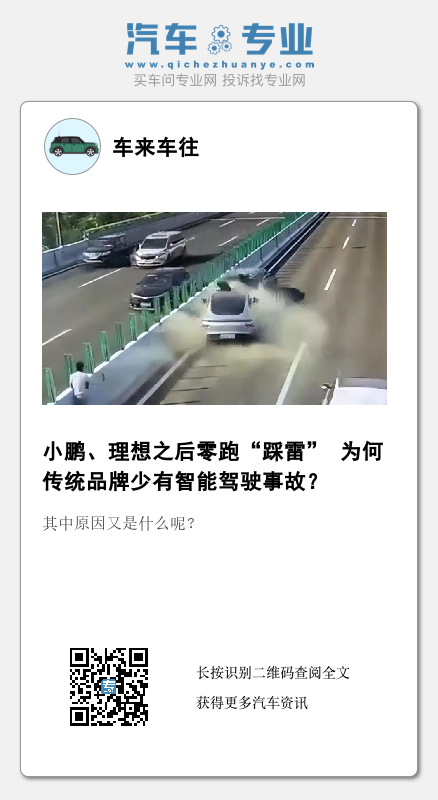 值得关注的是,目前来看,虽然各家智能驾驶水平有高有低,但大多都是通常定义下的L2级自动驾驶(辅助驾驶),该类功能并不止存在于造车新势力车型中,在如大众、丰田等传统品牌车型中也不少见,但传统品牌却少有出现类似事故被曝光。其中原因又是什么呢?选择新能源汽车的车主思想太激?还是其他?