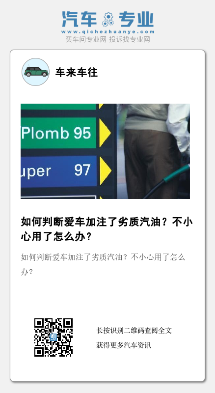可以根据车辆的动力性能和发动机的工作状态来判断车辆是否加注了劣质汽油。首先,当车辆行驶时,发动机工作时动力不足。当车辆快速加速甚至减速,甚至车辆熄火时,可以初步判断车辆汽油质量低。第二,当发动机工作时,它会伴随着加速器踏板、发动机抖动、怠速不稳定,严重的情况下还会引起整个汽车的晃动。