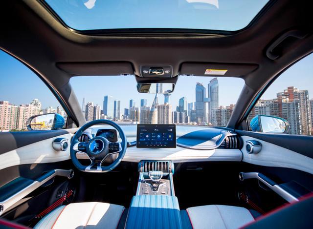 哪吒U采用了双12.3英寸大屏+8英寸显示屏的三联屏设计,其中双12.3英寸屏为一体式贯穿屏幕,连接了车辆的仪表盘和中控屏,可以显示丰富的车辆信息。8英寸屏幕采用触控式设计,配合下方的实体按键,可以非常便捷地进行操控。该车搭载了一个小You智能机器人,在车主进行语音控制时,它可以模仿人的表情、语气向驾驶员作出回复,整体的语音识别率很高。在功能方面,哪吒U具备疲劳驾驶提醒、全车AI语音控制、智能家居控制、主动救援服务等功能。