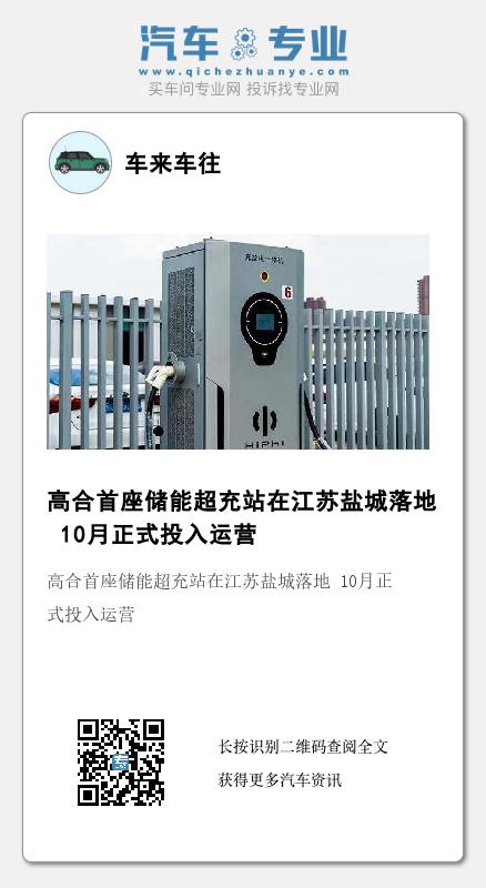 近日高合汽车官方宣布,旗下首座自建储能超充站在江苏盐城落地,配备了480kW(GB)和570kW(Chaoji)两种规格的液冷超充桩,计划将在2022年10月正式投入运营。