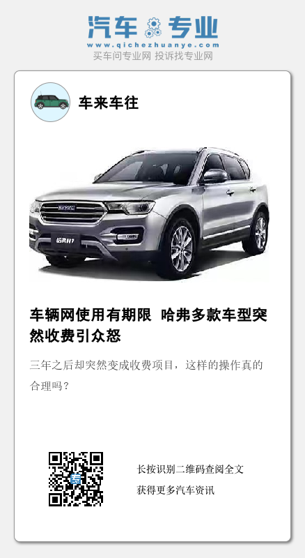 近段时间以来,有多位车主在投诉平台上投诉长城哈弗F7/F7x车联网突然收费的问题。据车主们反映:哈弗F7车机远程控制功能收费不合理,配置表里明明标明了远程启动功能是标配,可如今每年还需收费398元,三年套餐则为999元。