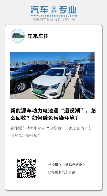 张莹表示:我们更加希望广大车主能够清晰地认识到新能源汽车,车辆和电池它两个是不能分开的,尽可能地把车和电池同时交给具有回收资质的企业去进行回收。