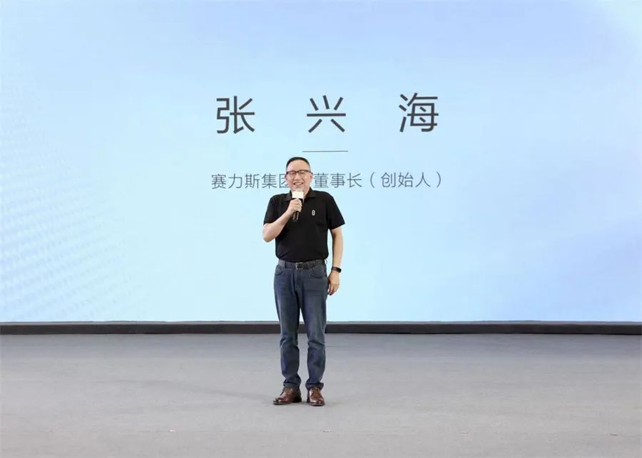 赛力斯集团董事长(创始人)张兴海和华为常务董事、终端BG CEO、智能汽车解决方案BU CEO余承东出席活动现场,向用户交付新车钥匙。
