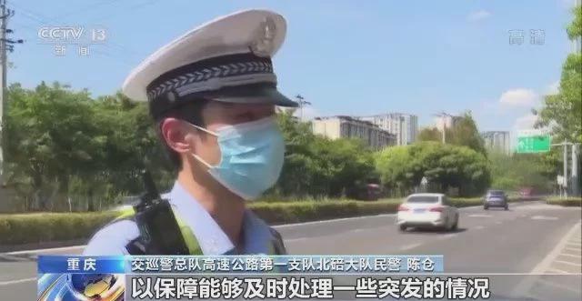交巡警总队高速公路第一支队北碚大队民警 陈仓:在这么热的天气,主要是对货车基件的情况进行一个查处,比如它的轮胎有没有达标,它的灭火器有没有过期,它的装载合不合规范。我们也会实时安排警力在路面上巡逻,以保障能够及时地处理一些突发的情况,保障大家的生命财产安全。