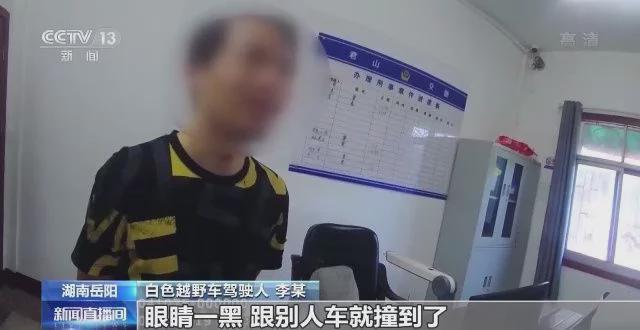 白色越野车驾驶人 李某:我迎着太阳的嘛,对着太阳,感觉边上比较模糊,就习惯性地走中间一点儿。可能是一下子进入阴影区以后没来得及回方向,眼睛一黑,跟别人的车就撞到了。