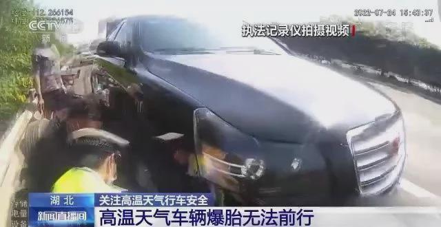 湖北:高温天气下 车辆爆胎无法前行