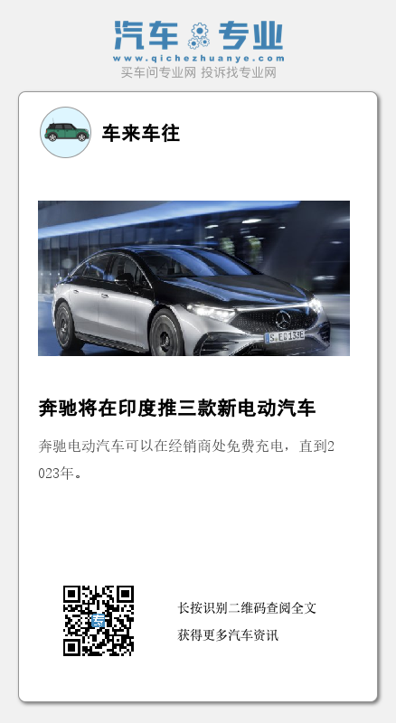奔驰还预计,未来5年内其电动汽车的销量在该公司印度总销量中的占比将达到25%。该公司还与其特许经营合作伙伴一起投资了1.5亿卢比,其目标是在2022年底之前,在印度建立一个由140个充电桩组成的充电网络。该公司表示:“该充电网络将专门为梅赛德斯奔驰的客户提供全天候服务。奔驰电动汽车可以在经销商处免费充电,直到2023年。”