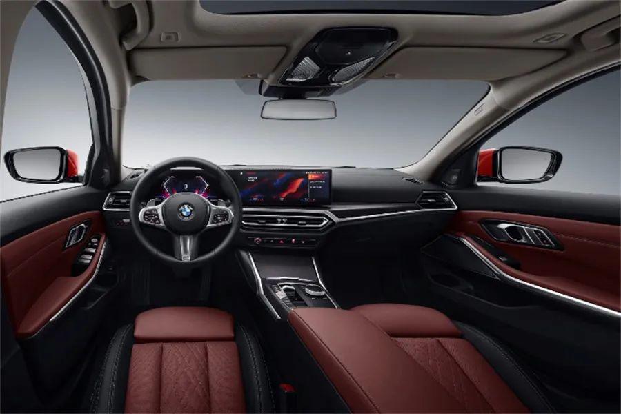 座舱之内,最引人注目的变化是12.3英寸+14.9英寸一体式悬浮曲面屏,以及搭载第8代操作系统的BMW iDrive*,为用户带来极佳的数字化感官体验与丰富的数字化应用。同时,车舱内配备9种颜色组合的环境氛围灯,挥洒在前排座椅背部的直瀑式氛围灯;全系标配中国专属舒适座椅,座垫与靠背均进行了增厚,结合中国专属后排头枕、高级三区自动空调;提供带滑动开启功能的全景玻璃天窗、电动遮阳帘。