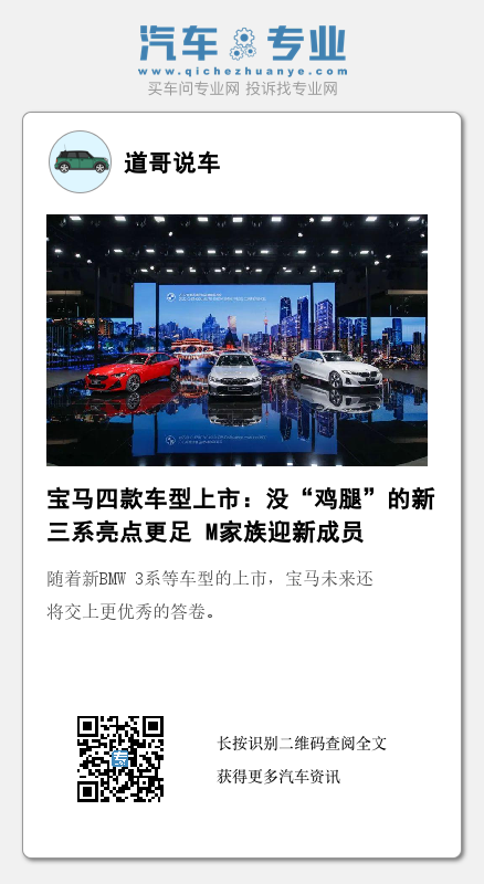 毫无疑问,多款新车的加入会使宝马在豪华汽车市场竞争中更具实力,特别是新BMW 3系的上市,无疑将为宝马夯实中国豪华品牌销量冠军地位做出突出贡献。值得一提的是,新BMW 3系取消了具有代表性的“鸡腿挡”,但却在改款之后为这款车型赋予了更多贴合时代的配置,体现了宝马的创新精神。