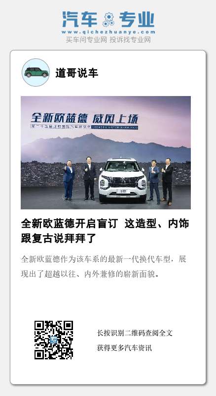 通过此次配置信息的全面公开,全新欧蓝德展现出由内而外焕然一新的硬派风采,而即将于年内上市的它,也将领跑车市赛场,迎来自己的“威风主场”。
