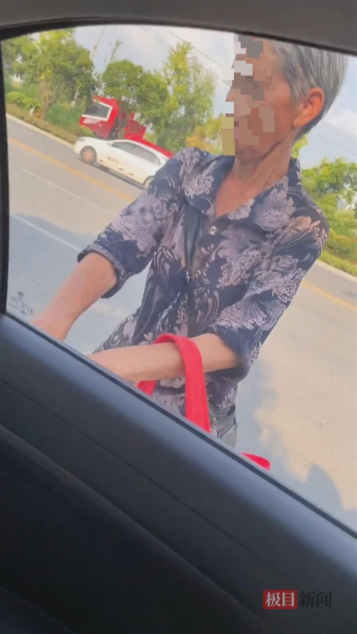现场视频显示,一女子正驾车在马路上缓慢行驶,一位阿婆跟在车旁,尝试拉车门上车。车内有人提醒开车女子:“不要理她,你搞你的,不要影响你考试。”