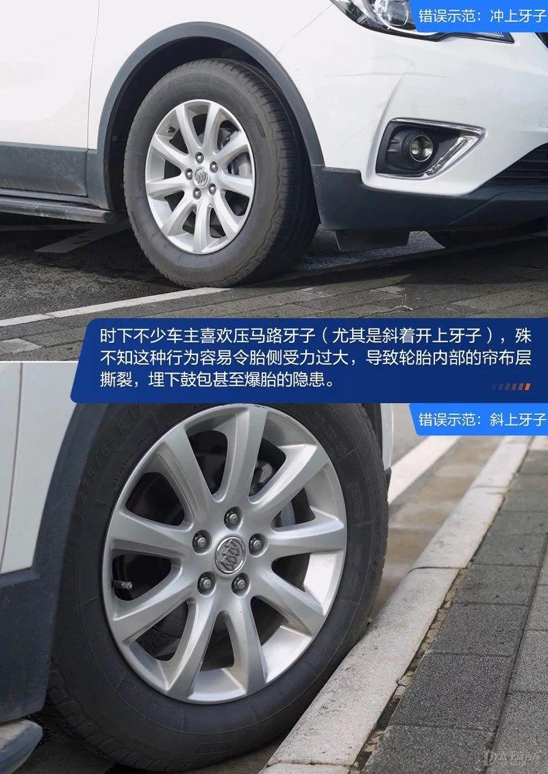 生活中不少车主喜欢“城市越野”,也就是压马路牙子,尤其是斜着开上马路牙子,殊不知胎侧(或者说胎壁)是轮胎最薄弱的部分,上马路牙子的行为很容易令胎侧内部的帘布层撕裂,埋下鼓包甚至爆胎的隐患。