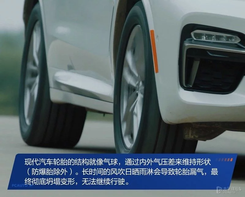 现代汽车轮胎的结构就像气球,通过内外气压差来维持形状。大家开车前大可绕车一周,确认车辆四个角有没有“塌下去”,避免长时间停放轮胎彻底漏气的尴尬情况。