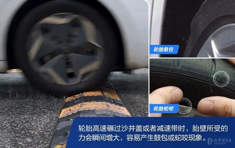 国内不少地方的路况还是不佳,对于轮胎而言,高速碾过沙井盖或者减速带时,胎壁所受的力会瞬间增大,很可能因为来不及压缩而被轮毂“蛇咬”导致爆胎……因此大家要避免在高速下直接碾过障碍物,能稍微调整方向绕开最好,高速碾过是下策。