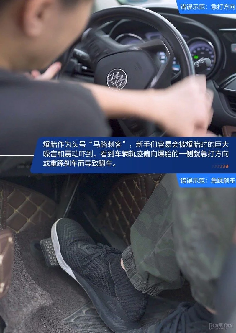 爆胎作为不少驾驶员“谈之色变”的“马路刺客”,新手们容易会被爆胎时的巨大噪音和震动吓到,看到车辆轨迹偏向爆胎的一侧就急打方向或重踩刹车,但这两种行为很容易导致翻车。