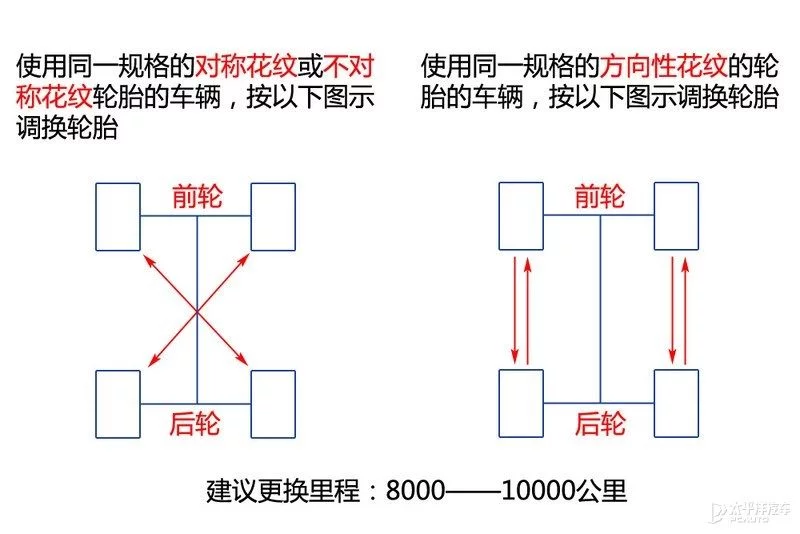 在每次更换的轮胎数目上,我们建议一次至少更换同轴的2条轮胎,并确保新胎装在前轮上,以确急转弯和急刹车时有着最好的操控性;而旧胎的调换原则是驱动轮垂直换,非驱动轮对角换。