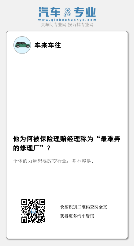 但在大多数修理厂看来,郑志曝光的行业内幕,其实都是“公开的秘密”。只是,靠一家修理厂去叫醒一个“装睡的行业”,似乎不现实。