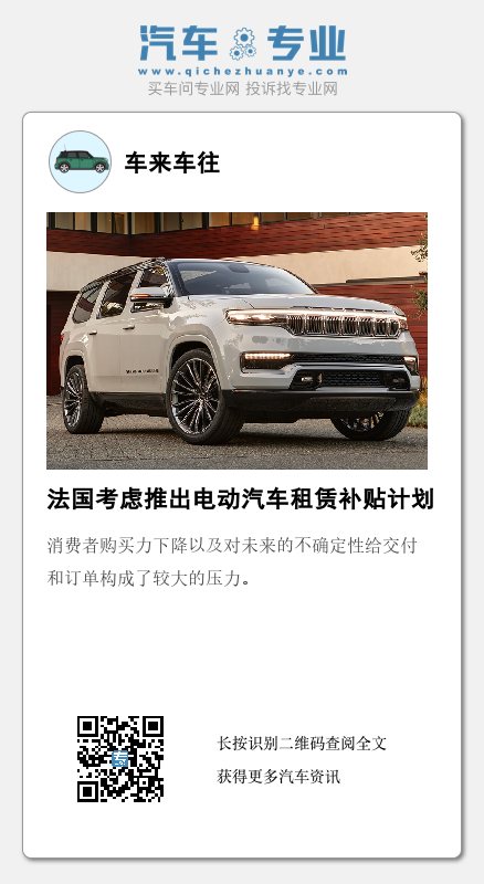 8月28日,法国预算部长Gabriel Attal在LCI电视台表示,该计划将使电动汽车每月的租赁价格为100欧元(合100美元),远低于许多消费者在汽油上的花费。法国政府正在研究如何快速推出这项措施以及可供应的电动汽车数量。这项租赁措施将惠及雷诺、大众、Stellantis等推出新电动车型的欧洲汽车制造商。