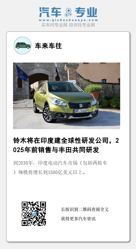 铃木汽车计划在2025年前在印度推出一款正在与丰田汽车合作开发的电动汽车。铃木将使用一个与丰田共同开发的紧凑型电动汽车专用平台,向市场推出新产品,其中可能包括SUV在内的车型。此举将把两家日本汽车制造商在印度的合作关系从混合动力车扩展到电动汽车。