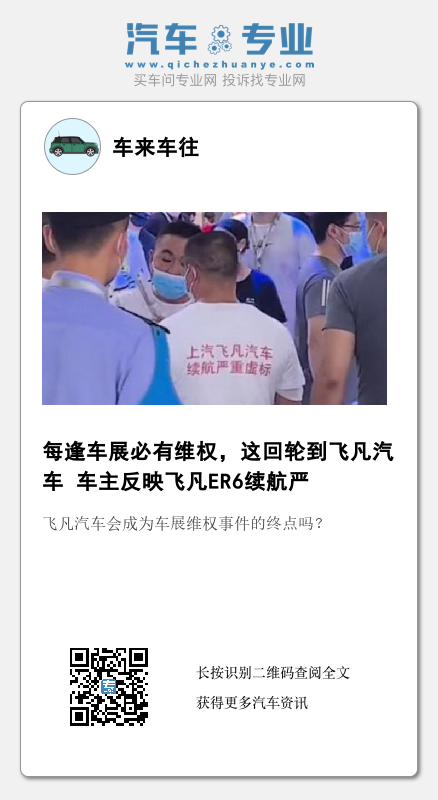 自然,日前开幕的成都车展也为我们“准备”了这样一场节目。据报道,8月28日,成都车展飞凡汽车展台上,10余位飞凡汽车车主身穿标有“上汽飞凡汽车续航严重虚标”字样的白色T恤站上展台。毫无疑问,这又是一起展台维权事件。