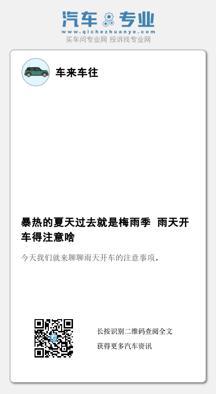 前段时间全国各地的高温实在是让人难以忍受,这两天气温倒是下来了,但紧接着雨季就来了,今天我们就来聊聊雨天开车的注意事项。